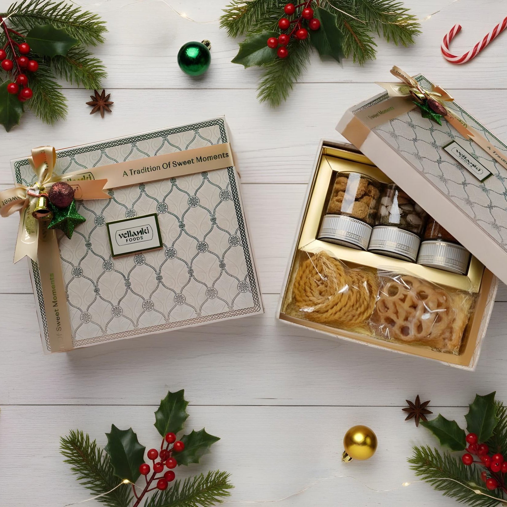 Celebrate the joy of the season with our Christmas Gift Box, a delightful assortment of festive treats crafted to spread warmth and cheer. Beautifully packed for the sharing joy, this combo brings together a handpicked selection of premium sweets, rich flavors, and classic Christmas indulgence—perfect for gifting or sharing with loved ones. Every bite captures the sweetness of togetherness and the magic of Christmas celebrations.